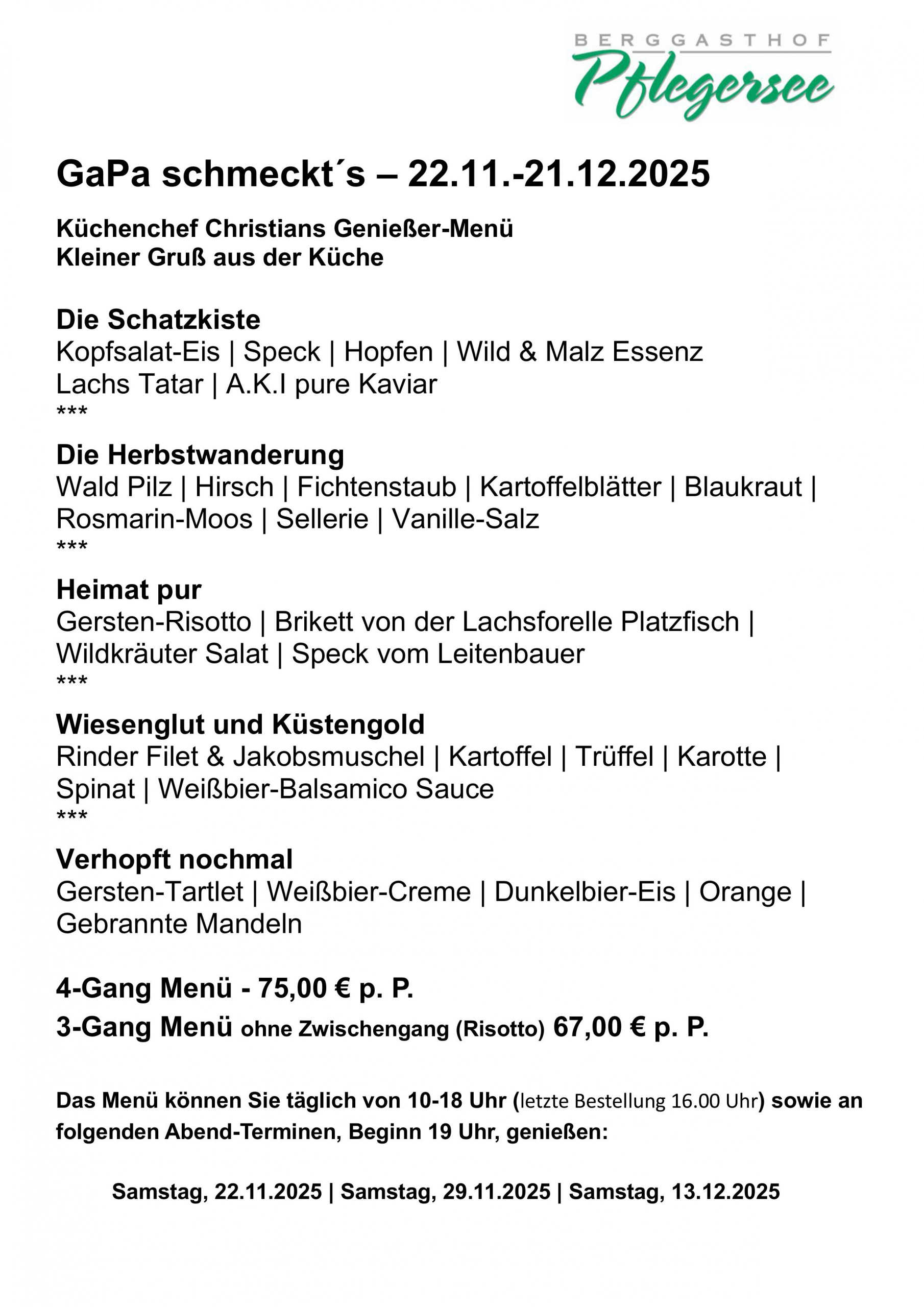 Hier findet ihr das speziell kreierte GaPa schmeckt´s 2025 Gourmet-Menü unseres Küchenchefs Christian: